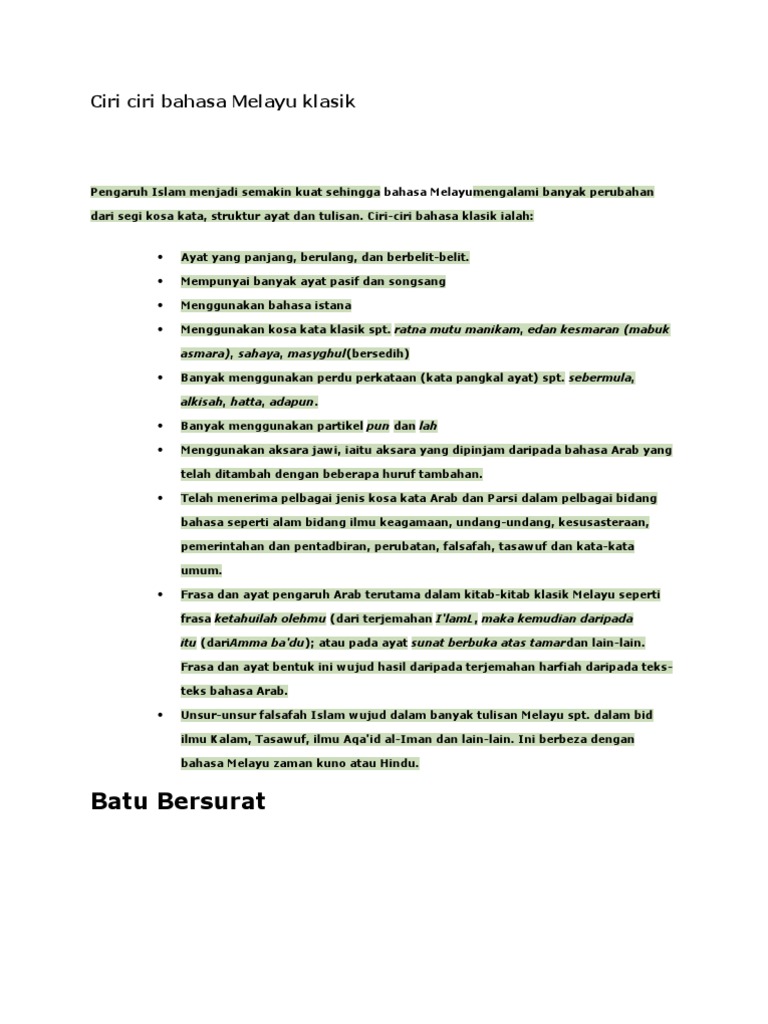 Contoh Bahasa Melayu Klasik / Semasa masih kecil, ia telah diterbangkan oleh sekor merak emas.. Kegemilangannya boleh dibahagikan kepada tiga zaman penting: Ketidakpedulian raja kepada rakyatnya c. Semasa masih kecil, ia telah diterbangkan oleh sekor merak emas. Nilai moral yang terdapat dalam kutipan sastra melayu klasik tersebut adalah. Kekacauan penduduk akibat hasutan b.