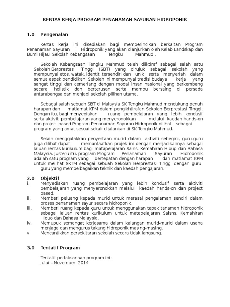 Kami memerlukan maklumat lanjut tentang perniagaan yang ingin dijalankan. Kertas kerja projek tanaman kontan. Rancangan umumnya dibuat di suatu kertas lalu menggambarnya. Kami akan bantu anda untuk menyiapkan satu kertas kerja terbaik untuk anda membuat pinjaman perniagaan, membuka cawangan perniagaan, dan pelbagai lagi tujuan sama ada untuk belajar atau untuk jadi, apa yang anda tunggu lagi, mari lihat contoh terbaik kertas kerja perniagaan ini. Ditanah mineral yang telah diperbaiki kesuburannya, baja organic hanya digunakan setiap dua kali musim penanaman. Tujuan kertas kerja ini dimajukan adalah untuk memohon peruntukan kewangan untuk. Kertas kerja proyek perubahan instansional. Sederhananya, bibit durian adalah tanaman durian montong yang sudah berbentuk pohon namun masih muda. Cocokkan warna kertas lakmus yang baru. Setelah itu, agar buah durian dapat tumbuh dengan baik, maka lokasi penanaman harus memiliki curah hujan yang cukup, tidak terlalu deras dan tidak terlalu kering. Biarkan lubang tanaman durian sekitar 1 minggu, supaya gas beracun yang ada di dalam tanah memuai karena terpapar oleh sinar matahari dan akhirnya terbawa oleh angin. Kertas kerja permohonan bantuan untuk melaksanakan projek penanaman sayur sayuran di tanah kekal pengeluaran makanan (tkpm ) di bidong setiu. Dalam hal ini plastic bekas maupun baru bisa disulap menjadi kerajinan yang menarik, bagus dan tentu saja bisa dijual kepada masyarakat umum.